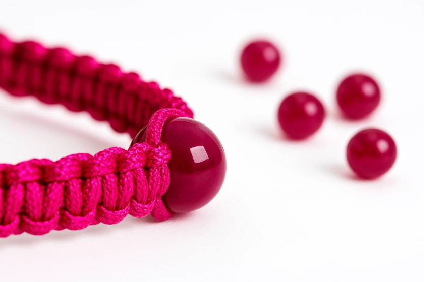 • Cordon : 100% Nylon rose tissé en macramé, entièrement réglable